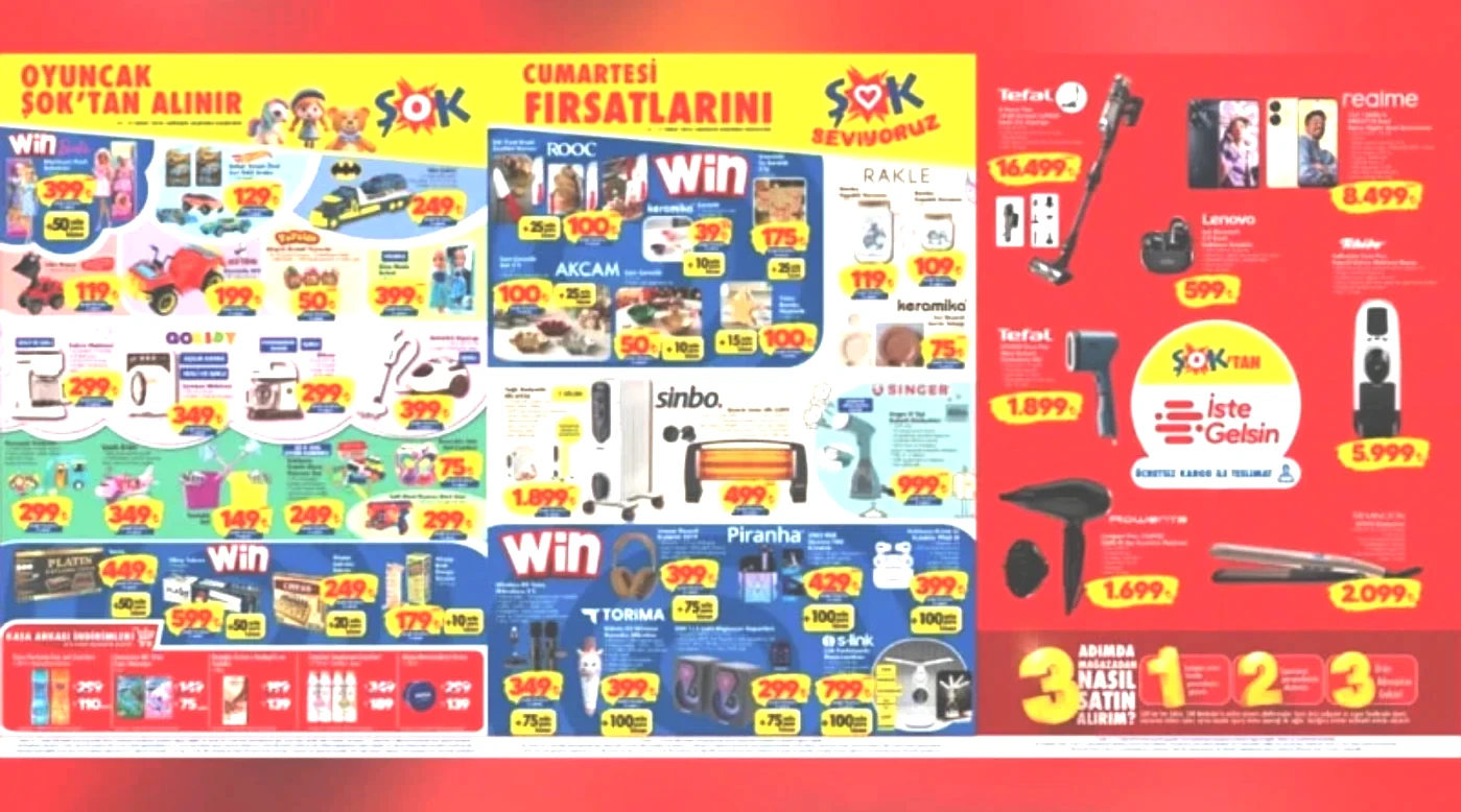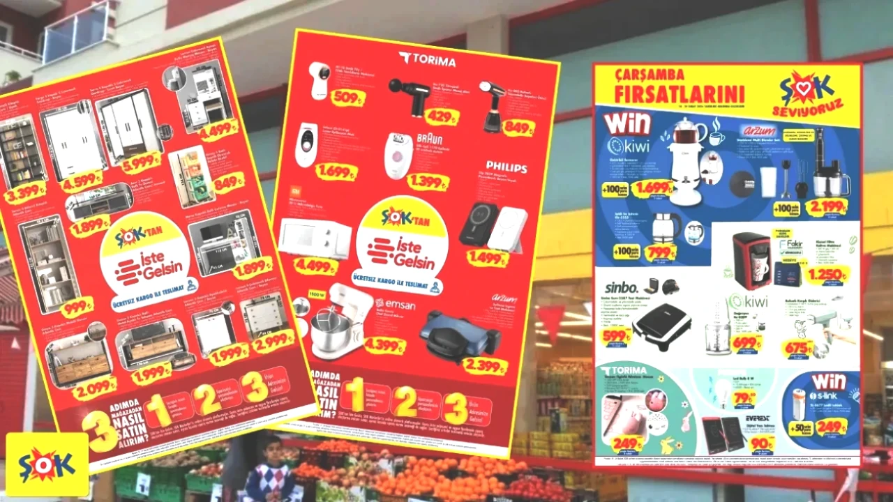 ŞOK Market, 25 Şubat 2026 tarihli güncel ürünler kataloğunu yayımladı. Çarşamba fırsatları çerçevesinde beyaz eşyalar, elektrikli ev aletleri, tekstil ürünleri, züccaciye ve temel ihtiyaç maddelerinde dikkate değer indirimler sunulmaya başlandı. Bu kampanya, 4 Mart 2026’ya kadar hem fiziksel mağazalarda hem de Cepte ŞOK uygulaması aracılığıyla geçerli olacak. Ayrıca, Win Para fırsatları ve kasa arkası kampanyaları alışverişe ek avantajlar sağlıyor.